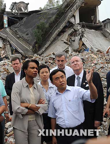 29日,賴斯對(duì)四川地震災(zāi)區(qū)進(jìn)行了不到四個(gè)小時(shí)的訪問(wèn)。賴斯是迄今為止訪問(wèn)中國(guó)地震災(zāi)區(qū)的美國(guó)最高官員,這也是她年內(nèi)第二次訪問(wèn)中國(guó)的第一站。