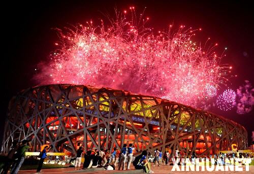 8月24日,第29屆夏季奧運(yùn)會(huì)閉幕式在國家體育場(chǎng)——“鳥巢”舉行。 這是閉幕式上燃放的焰火。 新華社記者李勇攝