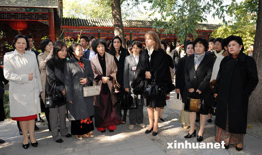 10月25日,參加第七屆亞歐首腦會議的外方領導人夫人在北京參觀恭王府。 新華社記者 黃敬文 攝