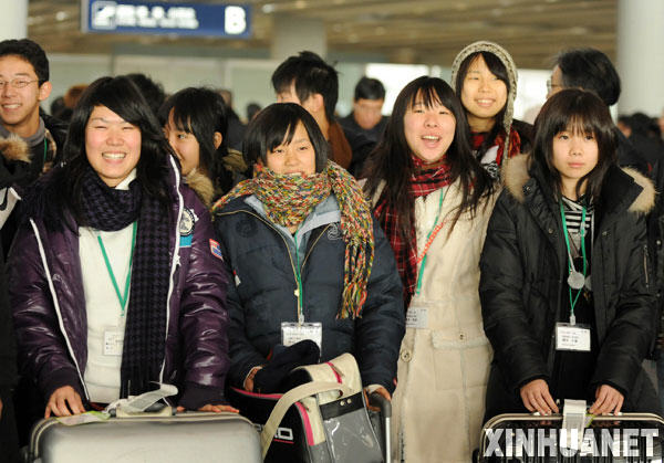 12月18日,來自日本大阪的高中生走出北京首都國際機場。 當日,作為“中日青少年友好交流年”框架下日方派遣的最后一個大型訪華團組,第2批日本青少年友好使者代表團一行1000人陸續(xù)抵達北京。除北京外,代表團將分為七個分團,分別赴浙江、遼寧、山東、廣東、陜西、江西、天津等地參觀訪問,與中國青少年廣泛交流,深入了解中國各地的情況,并出席中日雙方在京聯(lián)合舉辦的“交流年”中方閉幕式活動。 新華社記者 金良快攝
