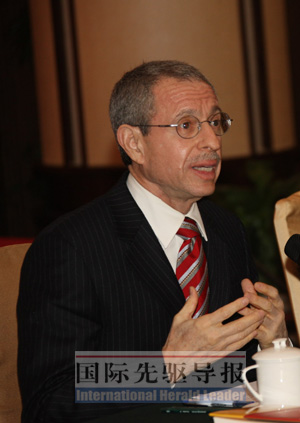 2008年12月22日 美國作家羅伯特·勞倫斯·庫恩的《中國30年:人類社會(huì)的一次偉大變遷》新書出版座談會(huì)在北京舉行。這是庫恩在座談會(huì)上發(fā)言。 本報(bào)記者 汪永基/攝