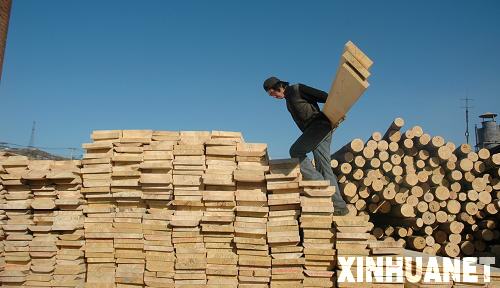 3月3日,一名工人在黑龍江省綏芬河市一個木材場工作。據(jù)綏芬河木材行業(yè)協(xié)會介紹,春節(jié)前后,從俄羅斯進口的木材僅有30車皮,到3月初木材進口量已經(jīng)增長到每天200多車皮。位于中俄邊境的綏芬河市是中國主要的木材貿(mào)易集散地之一。新華社記者劉愷攝