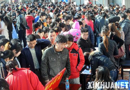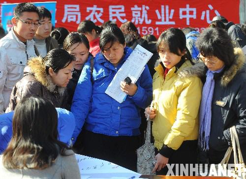 3月6日,北京朝陽區(qū)在王四營(yíng)鄉(xiāng)舉辦專場(chǎng)招聘會(huì),吸引了眾多農(nóng)民工和失業(yè)人員參加。 新華社記者羅曉光攝