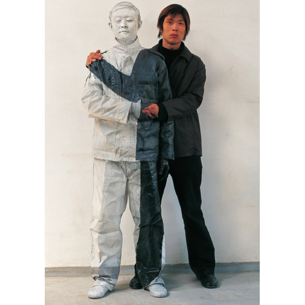 劉勃麟今年36歲,籍貫中國山東,將自己的身體當(dāng)做繪畫材料,將涂料涂邊全身以融進他身后的背景中。