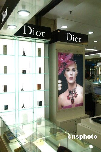 2008年日,美國(guó)演員莎朗·斯通在法國(guó)戛納電影節(jié)接受采訪時(shí),竟稱四川大地震是一件有趣的事情,還沒人性地稱其為“報(bào)應(yīng)”。此言一出,引來民憤連連,立刻發(fā)出“抵制莎朗·斯通”的倡儀。近日,迪奧中國(guó)發(fā)表聲明,撤銷及停止任何與莎朗-斯通合作。圖為在商店內(nèi)的迪奧展臺(tái)已經(jīng)更換了宣傳海報(bào)。中新社發(fā) 富田 攝