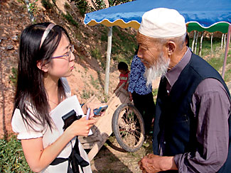 孫麗元:這位清華大三的學(xué)生正和樂都縣一位回族農(nóng)民交談。要去邊遠(yuǎn)地區(qū)教英語(yǔ),她曾忐忑不安,現(xiàn)在她說自己很有熱情。