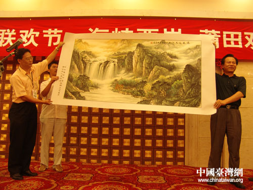 從南少林寺回到賓館,莆田接待工作組為臺(tái)灣來的客人們準(zhǔn)備了豐盛的晚宴和節(jié)目表演,現(xiàn)場氣氛熱鬧溫馨,臺(tái)灣十杰基金會(huì)和莆田市的代表還互贈(zèng)禮物留作紀(jì)念。(鐘寶華)