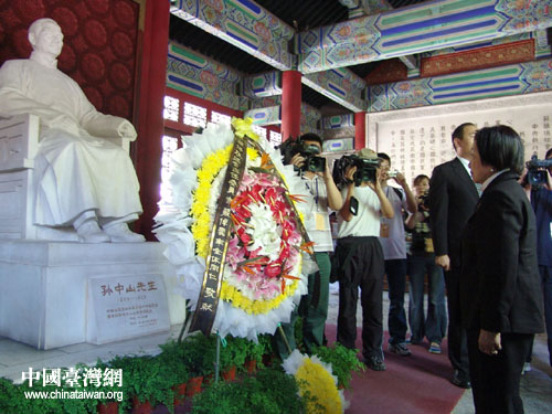 中國臺(tái)灣網(wǎng)5月17日北京消息 由臺(tái)灣知名人士辜儼倬云率領(lǐng)的中華婦聯(lián)總會(huì)參訪團(tuán)一行今天上午來到北京香山碧云寺,謁祭孫中山紀(jì)念堂及孫中山先生衣冠冢。