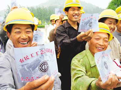 在濟南務工的5000名外地農(nóng)民加入當?shù)毓M織,興奮不已。江 浩攝