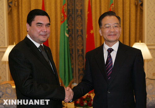 11月4日,國(guó)務(wù)院總理溫家寶在阿什哈巴德同土庫(kù)曼斯坦總統(tǒng)別爾德穆哈梅多夫舉行會(huì)談。 新華社記者黃敬文攝
