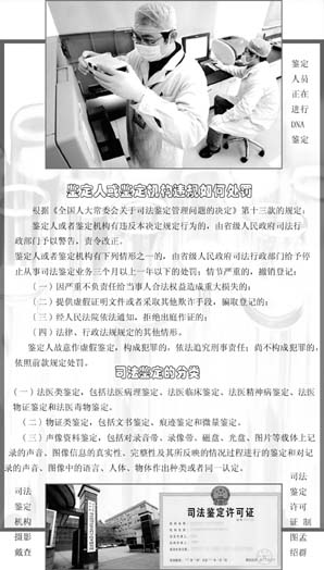 司法部副部長(zhǎng)郝赤勇告訴記者,規(guī)范執(zhí)業(yè)活動(dòng)、保證鑒定質(zhì)量,關(guān)系到司法行政機(jī)關(guān)的整體形象,關(guān)系到人民群眾的切身利益,關(guān)系到司法鑒定體制改革的順利進(jìn)行。