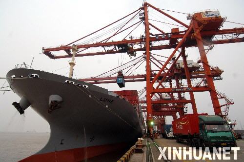 資料圖片:2007年7月16日,一艘貨輪在寧波北侖港裝卸集裝箱。黨的十六大以來,我國緊緊抓住加入世貿(mào)組織的重大機(jī)遇,積極參與經(jīng)濟(jì)全球化,著力提高對(duì)外開放水平,基本形成全方位對(duì)外開放格局。對(duì)外開放促進(jìn)了國民經(jīng)濟(jì)增長,加快了產(chǎn)業(yè)升級(jí),擴(kuò)大了就業(yè),增加了稅收,為實(shí)現(xiàn)全面建設(shè)小康社會(huì)戰(zhàn)略目標(biāo)、構(gòu)建和諧社會(huì)提供了重要保障。新華社發(fā)