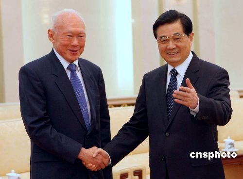 十一月十六日,中國(guó)國(guó)家主席胡錦濤在北京人民大會(huì)堂會(huì)見(jiàn)來(lái)訪的新加坡內(nèi)閣資政李光耀。 中新社發(fā) 任海霞 攝