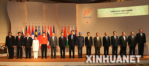 這是會(huì)議開(kāi)始前與會(huì)領(lǐng)導(dǎo)人合影。11月21日,中國(guó)國(guó)務(wù)院總理溫家寶(左七)在新加坡出席第三屆東亞峰會(huì)。新華社記者 樊如鈞攝