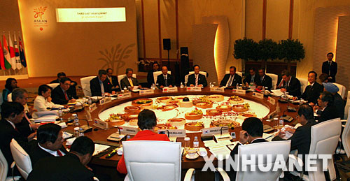 這是會(huì)議現(xiàn)場(chǎng)。11月21日,中國(guó)國(guó)務(wù)院總理溫家寶在新加坡出席第三屆東亞峰會(huì)。