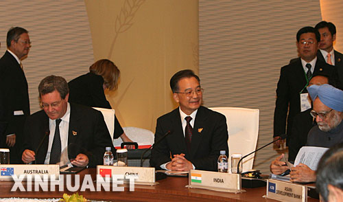 新華社記者 樊如鈞攝11月21日,中國(guó)國(guó)務(wù)院總理溫家寶在新加坡出席第三屆東亞峰會(huì)。 新華社記者 樊如鈞攝 人民網(wǎng)新加坡11月21日電(記者蔣安全)第三屆東亞峰會(huì)21日在新加坡舉行。中國(guó)國(guó)務(wù)院總理溫家寶與東盟10國(guó)、韓國(guó)、日本、印度、澳大利亞、新西蘭領(lǐng)導(dǎo)人共同出席。本次峰會(huì)的主要議題是氣候變化、可持續(xù)發(fā)展等。