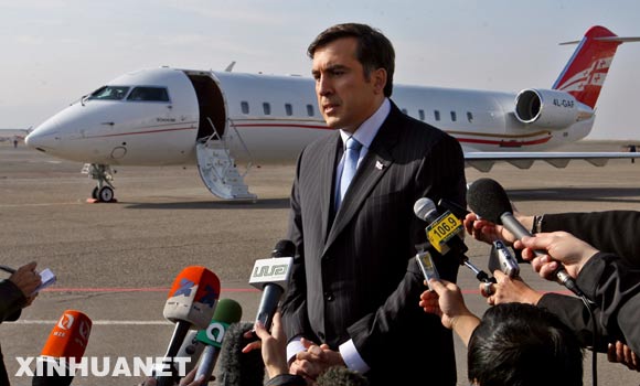 11月16日,格魯吉亞總統(tǒng)薩卡什維利在首都第比利斯的機場接受記者采訪。當(dāng)天,薩卡什維利承諾,格魯吉亞將舉行民主、透明的總統(tǒng)選舉。 新華社記者沈伯韓攝