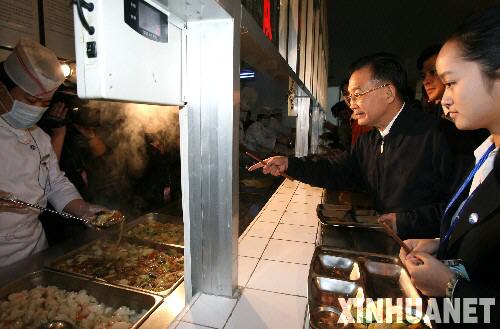 元旦來臨之際,中共中央政治局常委、國(guó)務(wù)院總理溫家寶來到陜西農(nóng)村和企業(yè)看望、慰問廣大干部群眾,向大家致以新年的問候。這是12月29日,溫家寶在西飛集團(tuán)的職工餐廳排隊(duì)打飯,和職工一起就餐! 新華社記者姚大偉攝