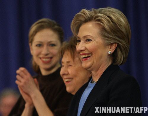 1月1日,在美國(guó)艾奧瓦州的艾姆斯,美國(guó)民主黨總統(tǒng)競(jìng)選人希拉里·克林頓(右)和她的女兒切爾西以及母親多蘿西·羅德姆一起參加競(jìng)選集會(huì)。美國(guó)總統(tǒng)選舉黨內(nèi)初選即將于1月3日在艾奧瓦州開鑼,民主黨和共和黨將分別舉行基層黨員會(huì)議,推舉參加高級(jí)黨員會(huì)議的代表,以選擇本黨總統(tǒng)候選人。 新華社/法新