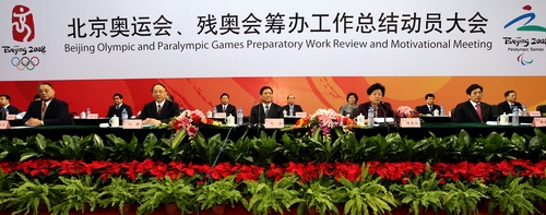 國(guó)家體育總局局長(zhǎng)、北京奧組委執(zhí)行主席劉鵬,北京市委副書(shū)記、代市長(zhǎng)、北京奧組委執(zhí)行主席郭金龍,中國(guó)殘疾人聯(lián)合會(huì)主席、北京奧組委執(zhí)行主席鄧樸方出席。