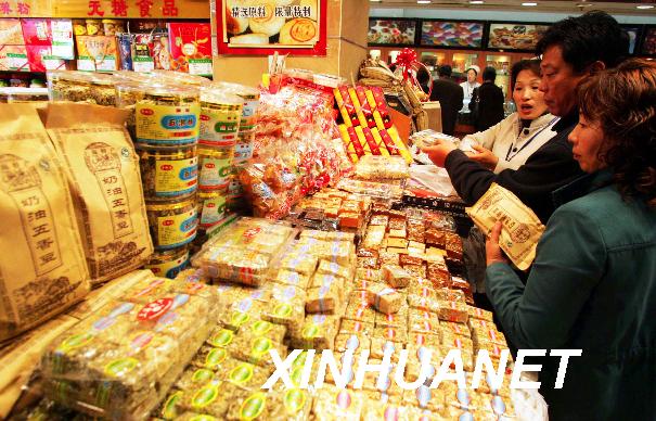 資料圖片:2007年11月13日,消費(fèi)者在上海南京路上的一家食品商店內(nèi)選購(gòu)商品。當(dāng)日,國(guó)家統(tǒng)計(jì)局公布的數(shù)據(jù)顯示,由于季節(jié)變化鮮菜價(jià)格上漲較快,以及入秋以來(lái)豬肉消費(fèi)量增價(jià)漲,10月份居民消費(fèi)價(jià)格總水平,比去年同月上漲6.5%,比上月上漲0.3%。1至10月累計(jì),居民消費(fèi)價(jià)格總水平同比上漲4.4%。新華社記者 裴鑫 攝