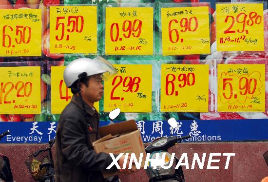資料圖片:一位市民從合肥一家超市的價(jià)格牌前走過(guò)。新華社記者 李健 攝