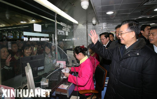 寒冬臘月,冷雨飄灑。8時15分,溫家寶在中共中央政治局委員、廣東省委書記汪洋,廣東省省長黃華華陪同下,來到了廣州火車站,看望廣大旅客。廣東是我國經(jīng)濟總量最大的省份,外來務(wù)工人員多,客流量大。近幾日受冰雪天氣影響,鐵路、公路受阻。作為我國南方最大的鐵路樞紐,廣州火車站是全國春運任務(wù)最為繁重的車站之一,幾十萬旅客滯留。他們的吃住、御寒、防病等問題讓總理十分牽掛。