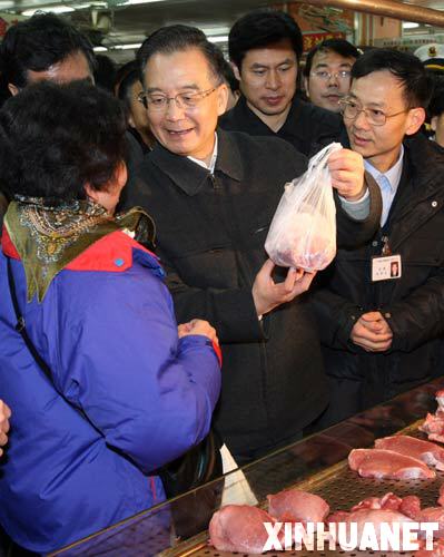 春節(jié)快到了,溫家寶十分關(guān)心市場供應(yīng)和價格問題。廣州東川新街市農(nóng)貿(mào)市場經(jīng)營各類肉菜品種近萬個,這里人流如潮,一派繁忙。來到店主梁少芬的檔口,總理關(guān)切地問,咸水鴨一斤多少錢,在這里經(jīng)營是否要交管理費。在店主周霞的檔口,出售廣州番禺區(qū)的無公害蔬菜,總理仔細查看產(chǎn)地。從菜價,到肉價,總理問得很細致。一位買菜的老太太告訴總理,今年她的退休工資又增加了160元,生活更有保障。溫家寶聽后高興地笑了。冬雨中,總理與大家揮手告別。