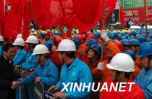 資料圖片:2008年2月10日,誓師大會現(xiàn)場,一名市民自發(fā)走上前來與電力職工握手。當(dāng)日,廣西南方電網(wǎng)公司在桂林舉行誓師大會,電網(wǎng)搶修單位層層簽訂了責(zé)任狀,保證在2月底完成電網(wǎng)修復(fù)工作。從2月7日起,桂林電網(wǎng)搶修工作進(jìn)入全面恢復(fù)性修復(fù)階段,15000多名電力職工將全力完成修復(fù)任務(wù)。新華社發(fā)(楊紹功攝)