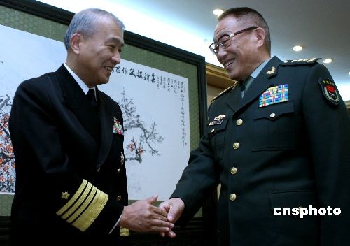 2月27日下午,中華人民共和國中央軍委副主席、國務(wù)委員兼國防部長曹剛川上將,在北京八一大樓會見來訪的日本自衛(wèi)隊聯(lián)合參謀長齋藤隆海軍上將。曹剛川說,臺灣問題事關(guān)中國的核心利益,希望日本方面從維護(hù)地區(qū)和平穩(wěn)定和中日關(guān)系大局出發(fā),尊重中方在臺灣問題上的立場和主張,旗幟鮮明地反對“臺獨(dú)”。 中新社發(fā) 宋吉河 攝
