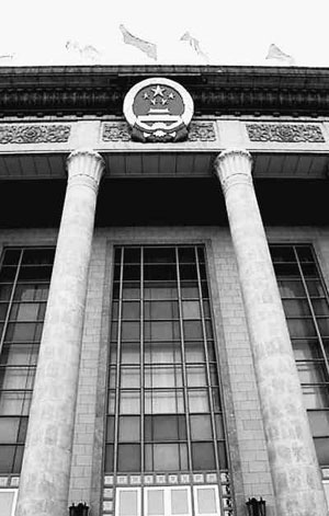 人民大會(huì)堂國(guó)徽高懸期待代表。。ㄙY料照片)