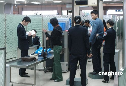 2008年3月13日,南昌昌北機(jī)場(chǎng)。據(jù)悉民航總局為保障航空安全,規(guī)定從3月11日起,所有液態(tài)物品均不得隨身攜帶上飛機(jī)。 中新社發(fā) 李國(guó) 攝