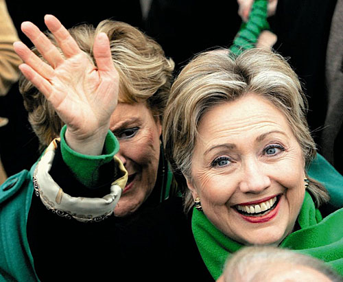 3月15日,在美國賓夕法尼亞州匹茲堡市的圣帕特里克節(jié)日大游行隊伍中,圍著綠色圍巾的民主黨總統(tǒng)競選人希拉里向支持者揮手。美國賓夕法尼亞州民主黨預(yù)選將在4月22日舉行。每年的3月17日,是西方的圣帕特里克節(jié)。東方IC/供圖