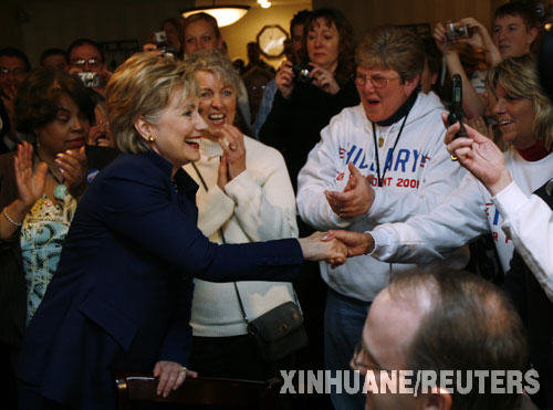 3月20日,美國(guó)民主黨總統(tǒng)競(jìng)選人希拉里(前左)在印第安納州特雷霍特進(jìn)行的競(jìng)選活動(dòng)上與支持者見(jiàn)面。 新華社/路透