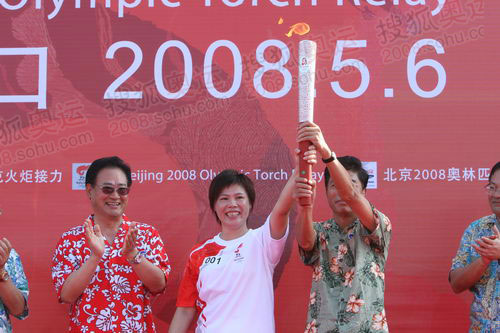 王麗芳(中)高舉火炬 奧運(yùn)官網(wǎng)記者繆禮東 攝