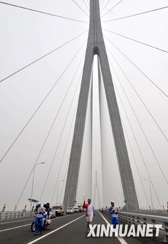 新華網(wǎng)江蘇南通5月25日電(記者王恒志、郭奔勝)奧運(yùn)圣火25日下午在江蘇省南通市進(jìn)行傳遞,圣火在新落成的蘇通大橋上完成交接,成為南通市圣火傳遞的一大亮點(diǎn)。