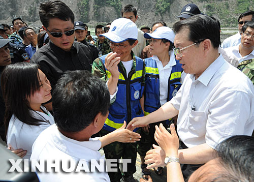 汶川縣映秀鎮(zhèn)是這次特大地震的震中區(qū)域,受災(zāi)情況最為嚴(yán)重。李長(zhǎng)春十分牽掛這里的抗震救災(zāi)工作進(jìn)展和受災(zāi)群眾轉(zhuǎn)移安置情況。3日上午,李長(zhǎng)春乘坐直升飛機(jī)前往映秀鎮(zhèn),實(shí)地察看災(zāi)情。他頂著烈日,徒步登上陡峭的山頭,看到眼前一片斷壁殘?jiān)、滿目瘡痍的景象,李長(zhǎng)春眉頭緊蹙,心情沉重。他走進(jìn)映秀鎮(zhèn)漁子溪村受災(zāi)群眾安置點(diǎn),與村民們親切握手。李長(zhǎng)春對(duì)村民們說,你們?cè)跒?zāi)難中經(jīng)受了磨難,你們不屈不撓、自強(qiáng)不息的精神感動(dòng)了全中國。希望你們振奮精神,生產(chǎn)自救,建設(shè)自己更加美好的家園。在漁子溪村黨支部帳篷里,黨支部書記蔣永福告訴李長(zhǎng)春,在抗震救災(zāi)工作中,漁子溪村黨員干部積極為群眾辦實(shí)事辦好事,李長(zhǎng)春聽了十分高興。他說,基層黨組織要成為率領(lǐng)群眾生產(chǎn)自救的戰(zhàn)斗堡壘,把每個(gè)黨員發(fā)動(dòng)起來,把每個(gè)群眾聯(lián)系起來,成為大家的主心骨,進(jìn)一步增強(qiáng)災(zāi)區(qū)群眾對(duì)黨和政府的信任。李長(zhǎng)春還與參加映秀鎮(zhèn)抗震救災(zāi)和衛(wèi)生防疫的解放軍指戰(zhàn)員、武警部隊(duì)官兵、公安民警和防疫人員親切握手,向他們表示感謝,鼓勵(lì)他們發(fā)揚(yáng)不怕疲勞、連續(xù)作戰(zhàn)的精神,為災(zāi)區(qū)恢復(fù)重建做出更大貢獻(xiàn)。