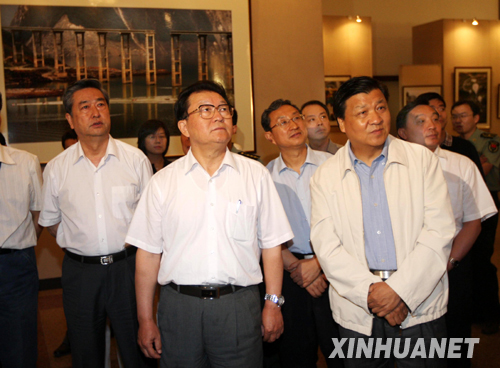 6月12日,中共中央政治局常委李長春在北京中國人民革命軍事博物館參觀“抗震救災眾志成城――2008中國抗震救災大型新聞圖片展”。中共中央政治局委員、書記處書記、中宣部部長劉云山一同參觀展覽。 新華社記者 劉衛(wèi)兵 攝