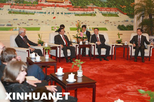 6月19日,全國人大常委會(huì)委員長吳邦國在北京人民大會(huì)堂會(huì)見出席第五屆亞歐議會(huì)伙伴會(huì)議各代表團(tuán)團(tuán)長。 新華社記者鞠鵬攝