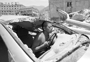 封城前一天,一小伙子正在設(shè)法轉(zhuǎn)移自己從廢墟里挖出來的愛車。昨起北川再次封城,不少居民前天抓緊搬東西。胥輝 攝