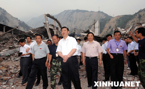 這是6月29日,習近平在汶川映秀鎮(zhèn)察看地震廢墟。 新華社記者 饒愛民 攝
