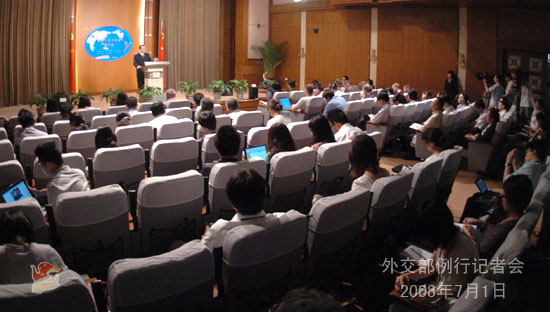 2008年7月1日下午,外交部發(fā)言人劉建超舉行例行記者會(huì),就胡錦濤主席將出席八國(guó)集團(tuán)同有關(guān)國(guó)家領(lǐng)導(dǎo)人對(duì)話會(huì)議、六方會(huì)談、津巴布韋局勢(shì)、中央有關(guān)部門與達(dá)賴私人代表接觸等答問(wèn)。