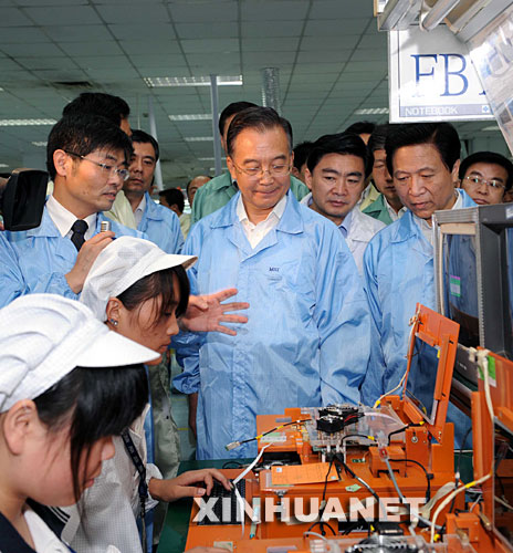 7月4日至6日,中共中央政治局常委、國務院總理溫家寶在江蘇、上海就經(jīng)濟運行情況進行調(diào)查研究。這是7月5日,溫家寶在江蘇微盟電子考察。新華社記者 饒愛民 攝