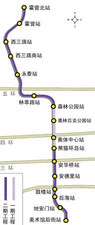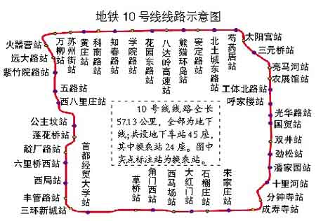 據(jù)悉,將要開(kāi)通試運(yùn)營(yíng)的三條地鐵線路中,地鐵奧運(yùn)支線(8號(hào)線一部分)全長(zhǎng)5.9公里,設(shè)4座車站,連接了奧林匹克中心場(chǎng)館區(qū)和森林公園,是直接服務(wù)北京奧運(yùn)會(huì)的軌道交通線路;地鐵10號(hào)線全長(zhǎng)24.6公里,設(shè)22座車站,呈倒“L”形,是和奧運(yùn)支線相連接的橫跨京城北部、縱貫北京東部地區(qū)的一條軌道交通線;地鐵機(jī)場(chǎng)線全長(zhǎng)28.1公里,設(shè)4座車站,將首都機(jī)場(chǎng)和城市中心區(qū)相連接,是服務(wù)航空旅客的重要客運(yùn)軌道交通專線。