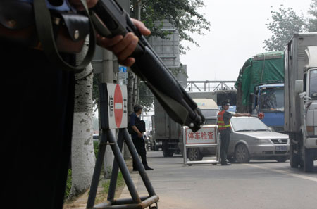 7月10日,北京警方荷槍實(shí)彈把守主要進(jìn)京通道。