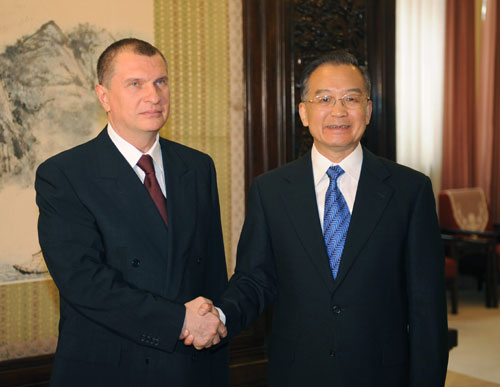7月26日,國務(wù)院總理溫家寶在北京中南海紫光閣會見俄羅斯副總理謝欽。新華社記者劉建生攝