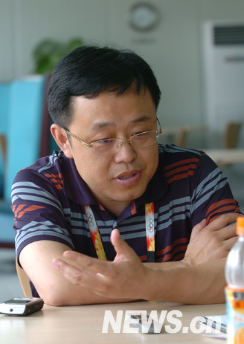 7月28日,北京奧組委運動會服務(wù)部反興奮劑處處長陳志宇在奧運村接受新華網(wǎng)記者專訪,詳細介紹了北京奧運會興奮劑檢測的相關(guān)情況。 新華網(wǎng) 陳競超 攝