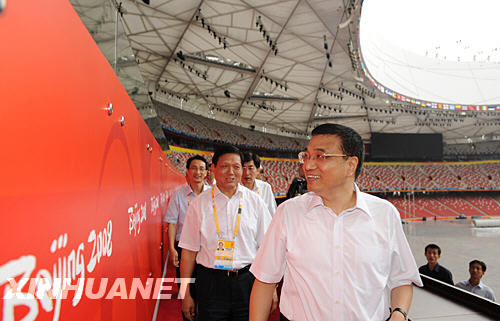 考察途中,看到一座座奧運場館拔地而起,氣勢雄偉,李克強十分高興。他強調,要圍繞舉辦一屆有特色、高水平奧運會的目標,認真貫徹綠色奧運、科技奧運、人文奧運理念,切實做好各項保障工作,努力把北京奧運會、殘奧會辦成國際社會滿意、各國運動員滿意、人民群眾滿意的國際體育盛會。