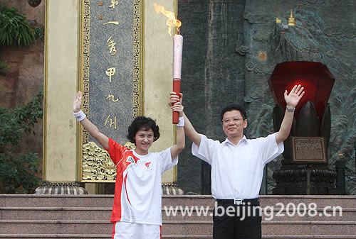 8月4日早上7點38分,北京奧運會圣火開始了在四川樂山市的傳遞,這是四川省境內(nèi)傳遞的第二站。首棒火炬手是兩度獲得奧運會冠軍、開創(chuàng)跳水界“高敏時代”的“跳水皇后”高敏。