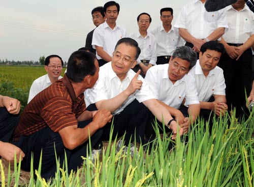 在寧夏回族自治區(qū)成立50周年大慶前夕,中共中央政治局常委、國(guó)務(wù)院總理溫家寶到寧夏深入工廠企業(yè)、田間地頭,走訪居民,親切慰問(wèn)各族干部群眾,共商寧夏未來(lái)發(fā)展大計(jì)。這是8月15日,溫家寶在賀蘭縣洪廣鎮(zhèn)優(yōu)質(zhì)糧產(chǎn)銷合作社了解水稻種植情況。(新華社記者饒愛(ài)民攝)